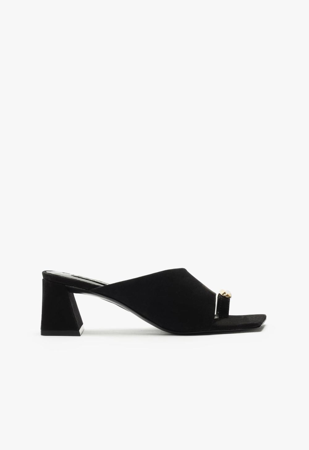 Queste eleganti Jodies a punta aperta sono pensate per chi ama distinguersi. Dotate di un tacco medio e di un caratteristico anello sulla punta, donano un tocco artistico a qualsiasi outfit. Perfette per distinguersi, sia che si esca per un brunch o per una serata elegante.